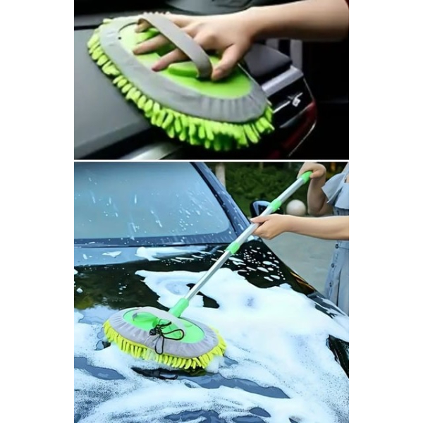 YEDEK BEZLİ MİKROFİBER ARABA YIKAMA FIRÇASIÜrün ÖzellikleriYedek bezli mikrofiber araba yıkama fırçası, araç temizliğinde maksimum verim ve kolaylık sunar. Uzun ve hafif teleskopik sapı sayesinde 1,60 metreye kadar uzayabilir, böylece yüksek veya geniş araç yüzeylerine erişim sağlar. 2’si 1 arada tasarımıyla öne çıkan fırça başlığı, şönil yüzeyden ayrılarak eldiven gibi kullanılabilir. Bu özellik, hem geniş hem de dar alanlarda detaylı temizlik yapılmasını mümkün kılar. 180 derece dönebilen esnek başlığı, farklı açılarda kullanım imkânı sunarak pratik bir deneyim sağlar. Mikrofiber yapısı toz, kir ve suyu etkili şekilde toplar, çizik bırakmaz ve yüzeyde iz bırakmaz. Araba kaportası, cam yüzeyler, jantlar veya evde cam, balkon gibi yüzeylerin temizliği için de uygundur. Ürün, yıkanabilir ve tekrar kullanılabilir bez yapısıyla uzun ömürlü kullanım sunar. Paket İçeriği 1 Adet Mikrofiber Araba Yıkama Fırçası (Teleskopik sap + başlık) 1 Adet Yedek Mikrofiber Bez