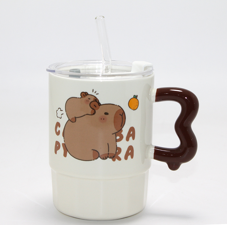 Sevimli Capybara Figürlü Kapaklı Porselen Kupa Bardak