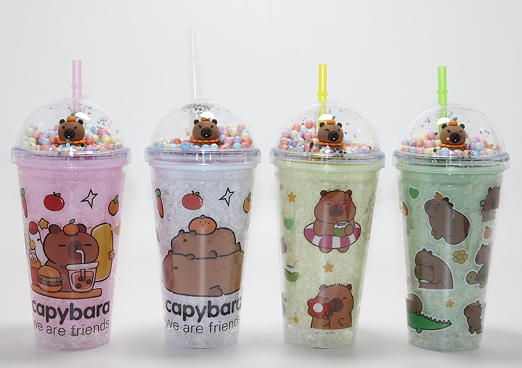 Sevimli Kapibara Pipetli Boncuklu Termos & Suluk