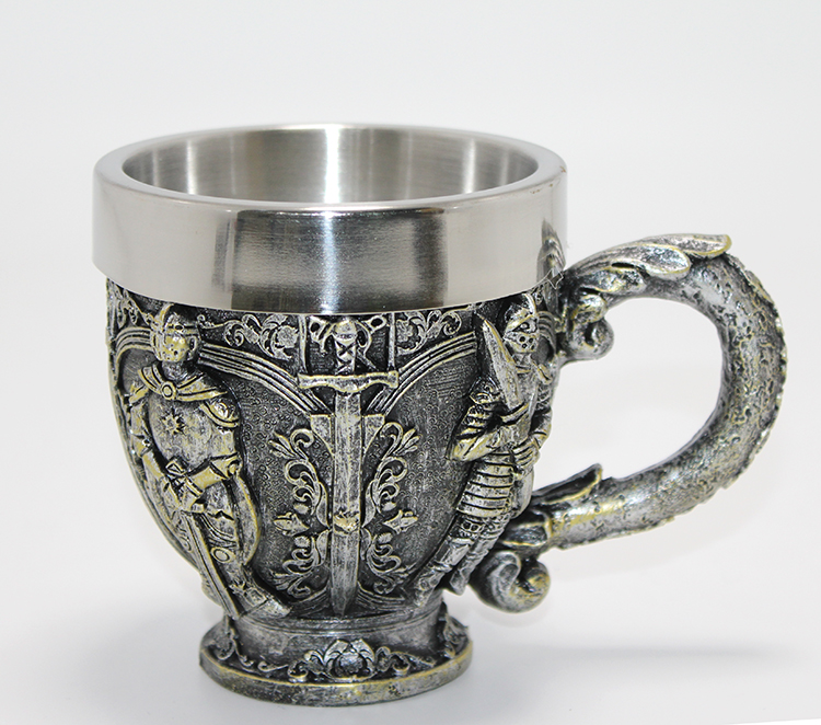 Şövalye Kabartmalı Paslanmaz Çelik Kupa Bardak