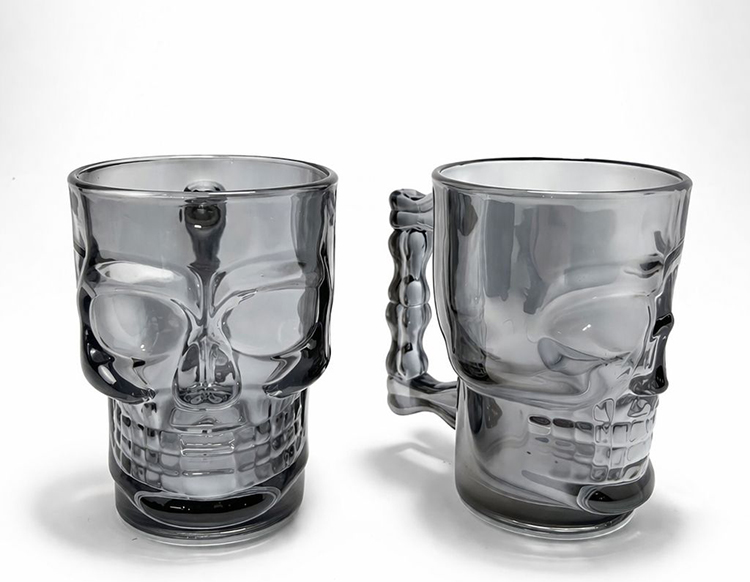 2'li Şeffaf Cam Kurukafa Kupa Bardak Seti
