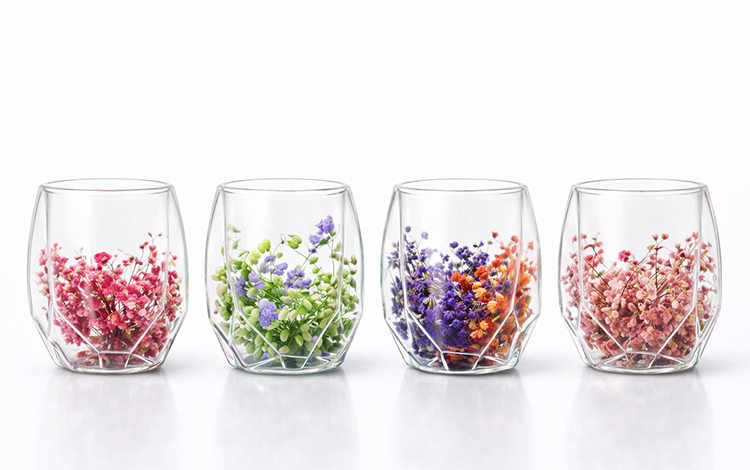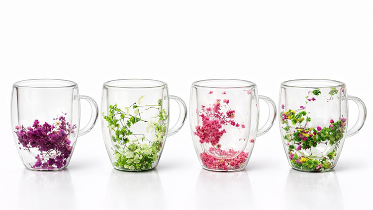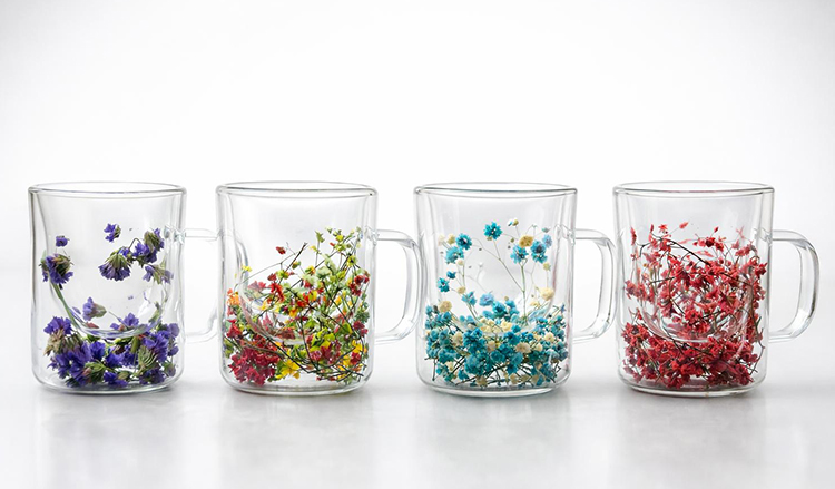 Çift Camlı Çiçekli Borosilikat Kupa Bardak